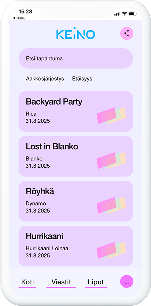 Kokous, juhla, tapahtuma, näyttely, matsi… KEiNO kaikenkokoisiin tapahtumiin – kaikenkokoisille lipunmyyjille.