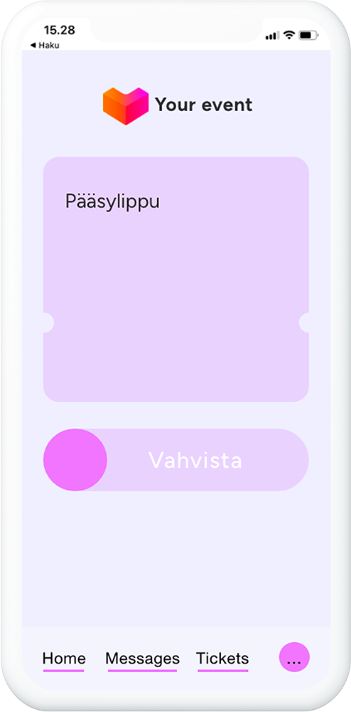 Ostotositteet eli tiketit ilmestyvät aina appiin. Et tarvitse maksupäätteitä ja erillistä lukijaa. Asiakas merkitsee ostoksensa käytetyksi liukuytkimellä myyjän nähden ovella tai myyntitiskillä. Voit perustaa joustavasti lipuntarkastus- tai myyntipisteen minne tahansa, vaikka liikkuvana.