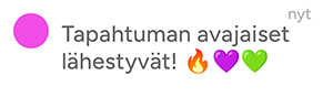 Lähetä viestejä omalta työpöydältäsi, 24/7, reaaliajassa tai ajastettuna. Toivota osallistujat tervetulleeksi, muistuta pian alkavasta tapahtumasta tai kerro yllättävistä muutoksista. Kiitä osallistumisesta!
